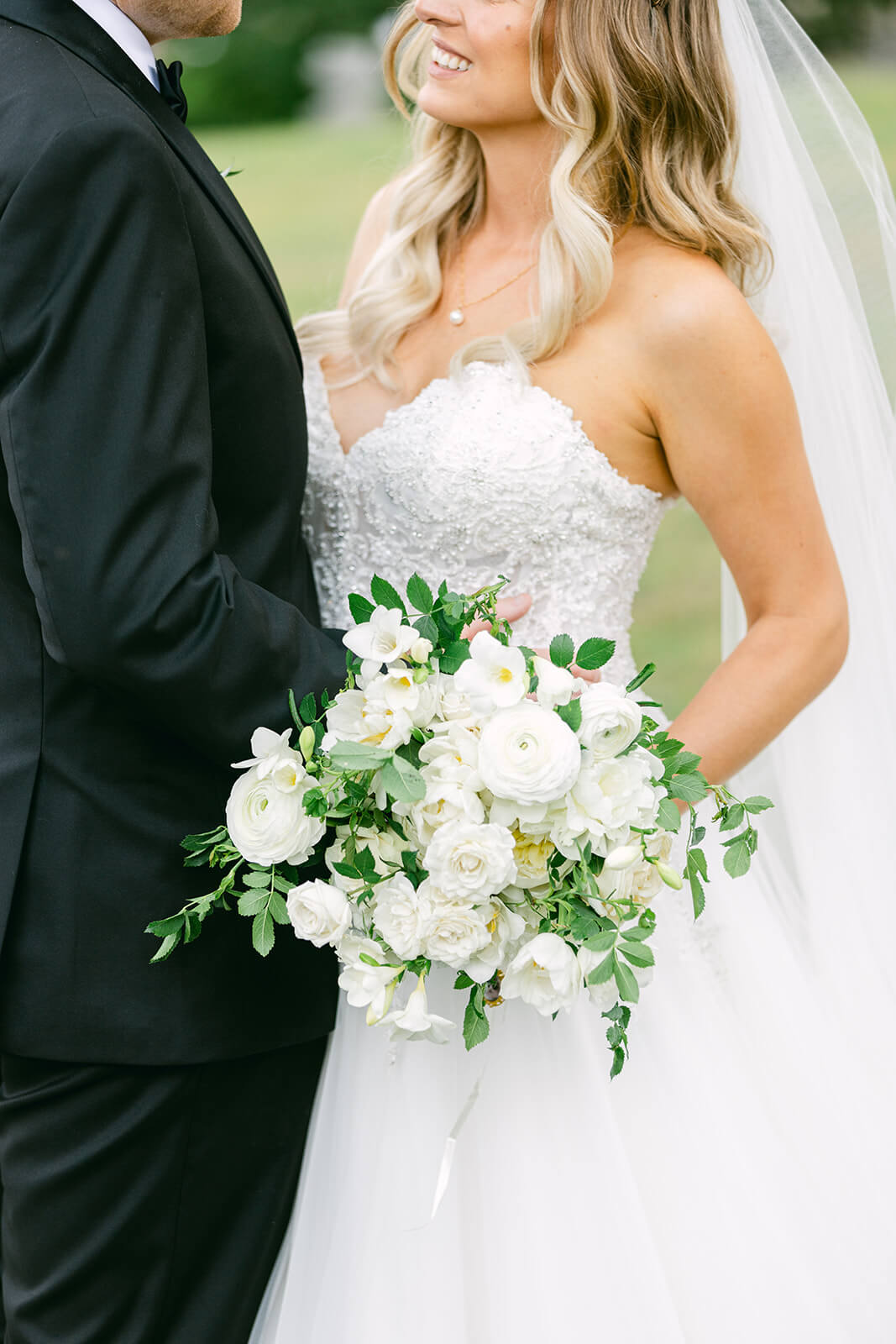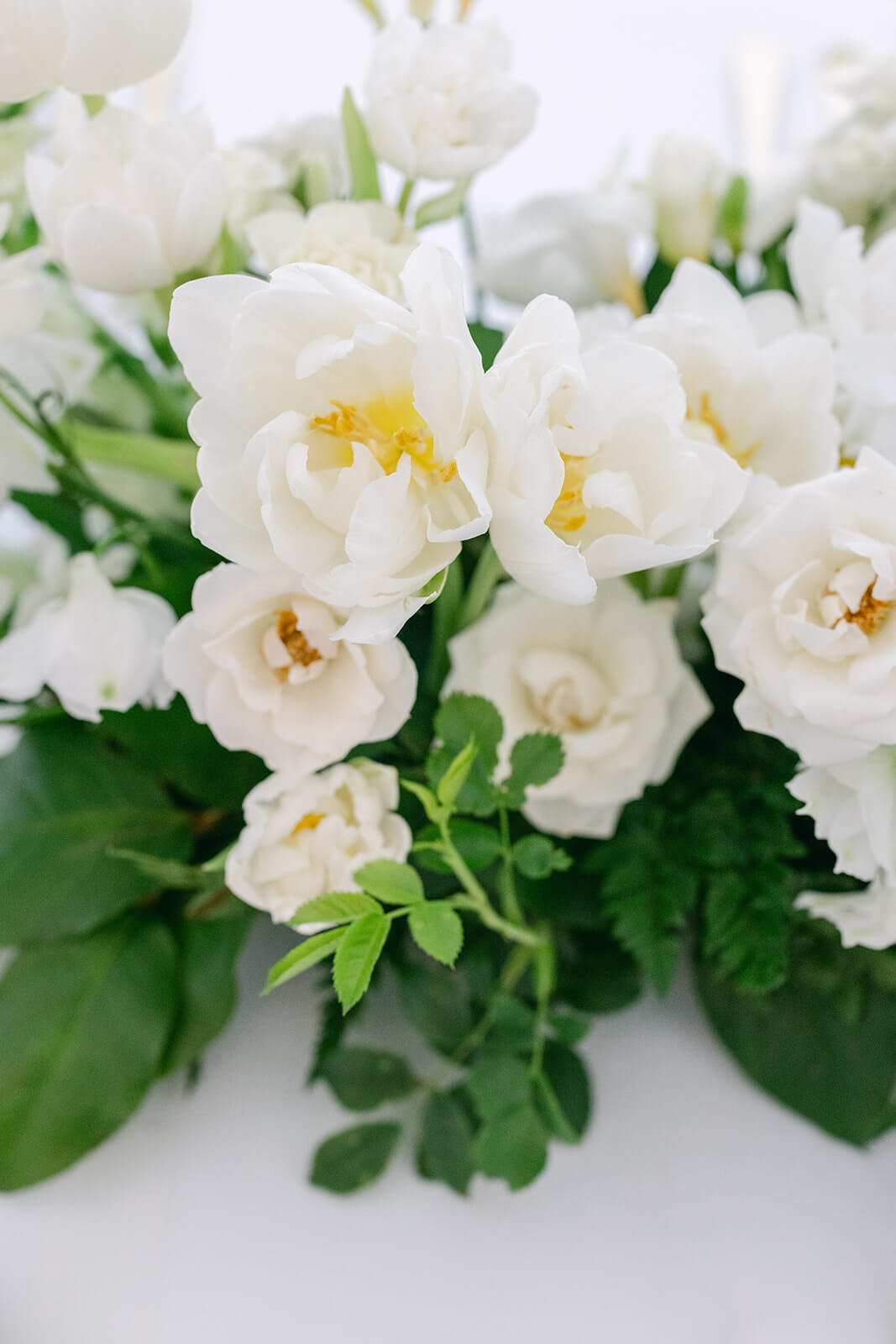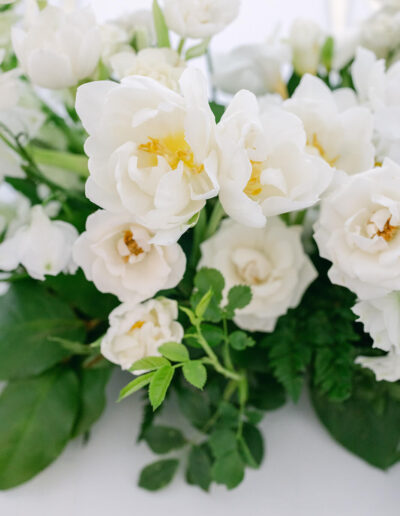 a do nich jemně zasazené bílé květy jako z francouzského venkova.